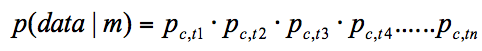 For a sequence of choices, we get a sequence of single-trial probabilities for choosing Orange (or Blue),